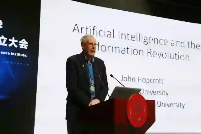 人工智能领域的专家学者汇聚一堂,就人工智能开展高峰论坛。论坛由毛军发主持。中国科学院外籍院士、图灵奖得主John Hopcroft做了题为 “Artificial Intelligence and the Information Revolution” 的报告,深入探讨了人工智能在新一轮信息革命中所扮演的重要角色。