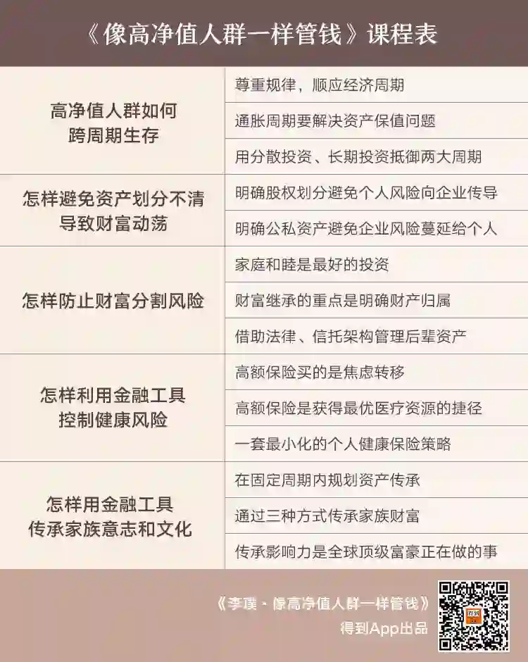 向高净值人群学习如何利用金融工具跨越不同周期、管理自身健康、婚姻家庭、公司权益以及管理这一辈和下一辈的生活。
