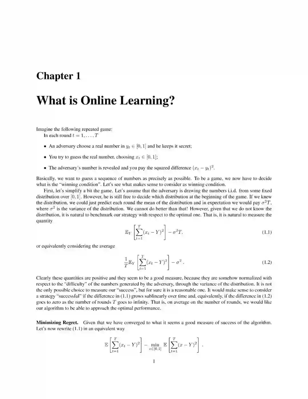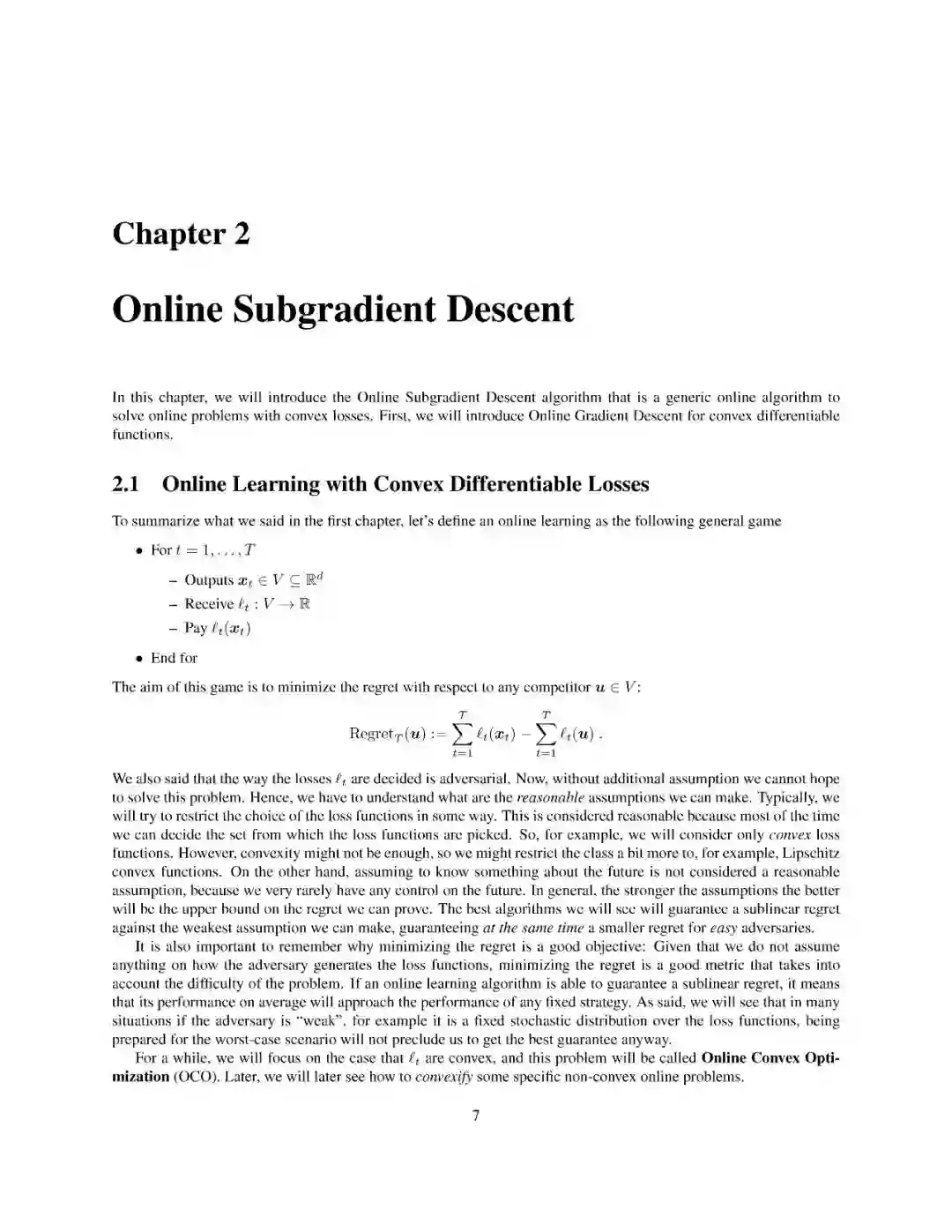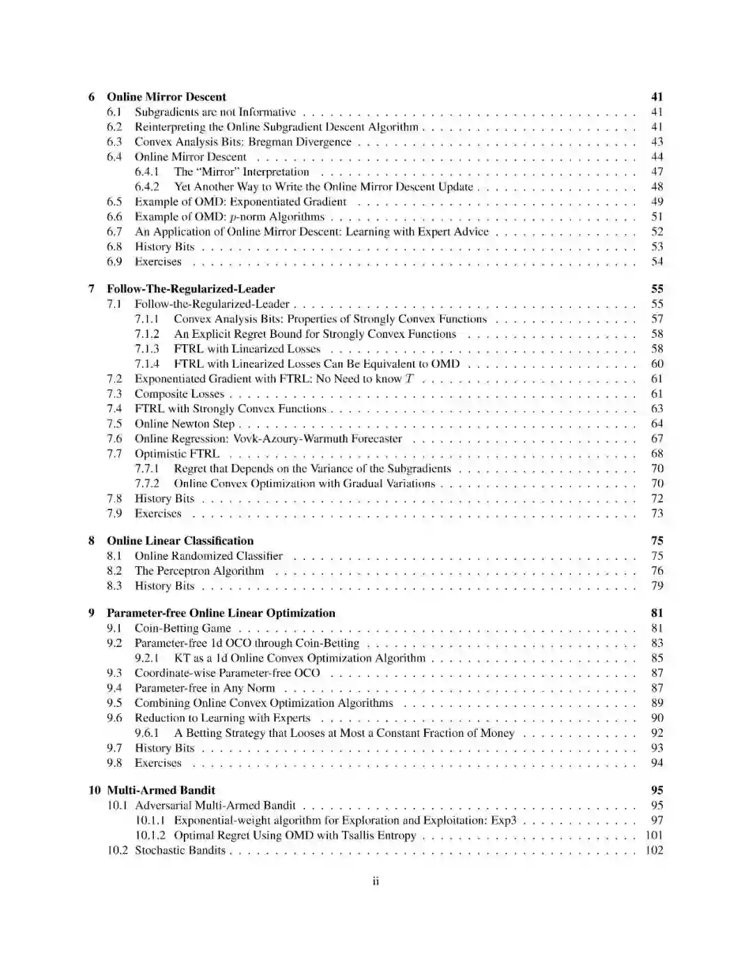 这本专著,我通过在线凸优化的现代视角介绍了在线学习的基本概念。这里,在线学习指的是在最坏情况假设下的后悔最小化框架。我提出了凸损失在线学习的一阶和二阶算法,在欧几里德和非欧几里德设置。所有的算法都清晰地呈现为在线镜像下降或跟随正则化及其变体的实例化。特别关注的是通过自适应和无参数在线学习算法来调整算法的参数和在无界域内学习的问题。非凸损失通过凸替代损失和随机化处理。本文还简要讨论了强盗设置问题,讨论了具有对抗性和随机性的多武装强盗问题。这些笔记不需要凸分析的先验知识,所有必需的数学工具都得到了严格的解释。此外,所有的证明都经过精心挑选,尽可能地简单和简短。