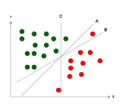 理解内核方法需要从机器学习中被称为线性分类器的算法开始。假设猫和狗只能使用二维数据进行分类,这意味着你需要两个特征(比如鼻子的大小,我们可以在 x 轴上绘制,而耳朵的大小可以在y轴上表示)来区分两种类型的动物。根据x-y平面上绘制标记的数据,猫应该在一个集群中,而狗在另一个集群。
