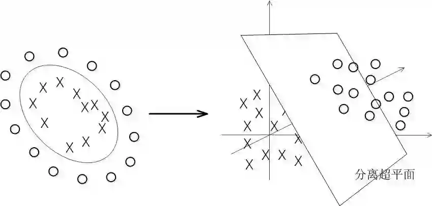 其次,给定两个低维数据点,内核机可以使用核函数输出一个数字,这个数字等于相应的高维特征的内积。关键是,该算法可以使用这种技巧来找到超平面的系数,而无需真正进入高维空间。