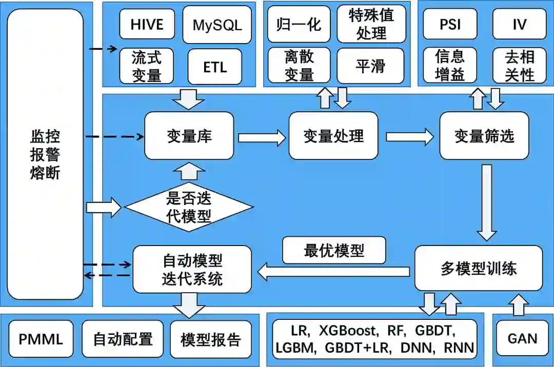 上文介绍了我们的风控变量体系,下面介绍自动化迭代反欺诈模型框架,如图2所示。