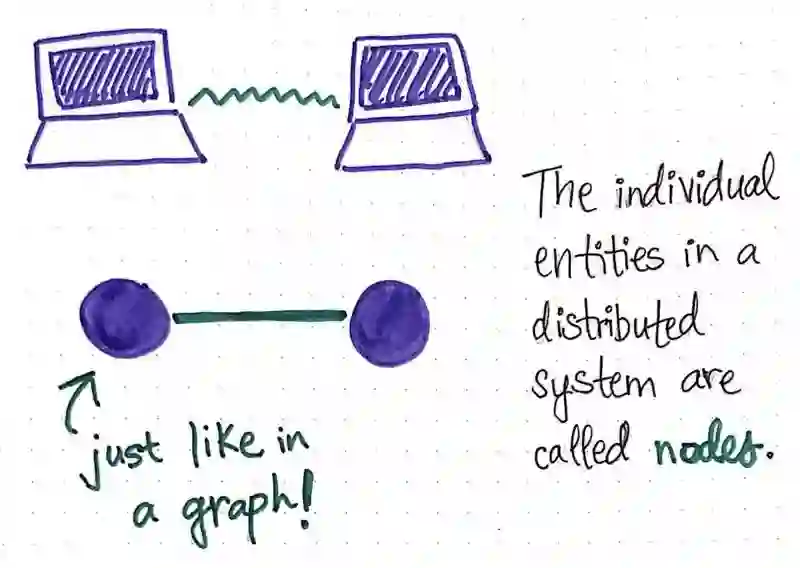 如果你觉得节点似曾相识,并让你想起了图论,那你的直觉还是挺厉害的,这两者之间确实是有联系的。如果我们把计算机网络当成分布式系统(他们其实也是),那么我们就可以把网络里不同节点的连接看成一个图。
