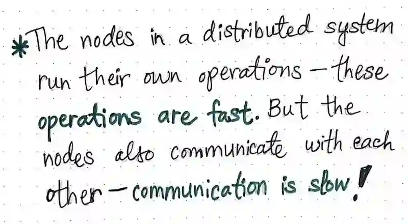 节点中的操作 (图译:分布式系统中,节点里的操作很快,但节点间的通讯很慢)