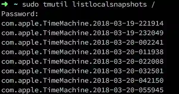 sudo tmutil listlocalsnapshots /