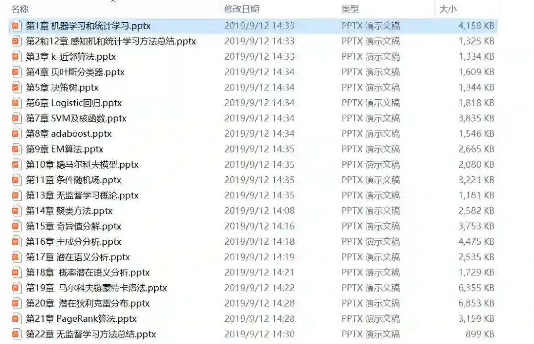 包括感知机、k 近邻法、朴素贝叶斯法、决策树、逻辑斯谛回归与最大熵模型、支持向量机、提升方法、EM 算法、隐马尔可夫模型和条件随机场,以及聚类方法、奇异值分解、主成分分析、潜在语义分析、概率潜在语义分析、马尔可夫链蒙特卡罗法、潜在狄利克雷分配和 PageRank 算法等。