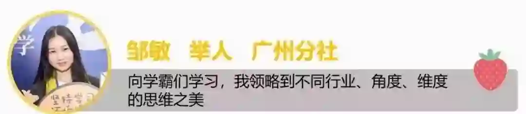 答辩的过程中结识到来自全国各地的小伙伴,认识了很多非常优秀的高手,不管是对于思维模型的学习,还是自己的眼界见识,都提升了不少。看到高手们的优秀,让我意识到未来还有很长的路要走,还有很多的知识值得学习,也给了自己更多前进的动力~