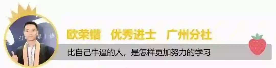 学习不要贪多求全,必有一门深入,绝无门派偏见。每个人阅历和思考都不一样,要学会吸收他人授课或者分享中touch到自己的部分,也就是要发现属于你自己的那颗草莓,把这些草莓拿来刻意学习,深度学习,延展学习,并搭建到你自己的认知体系里面去。