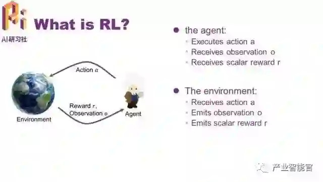 我们先看一下强化学习是什么,强化学习有两个主要组成部分,一个是 agent,另一个是环境。