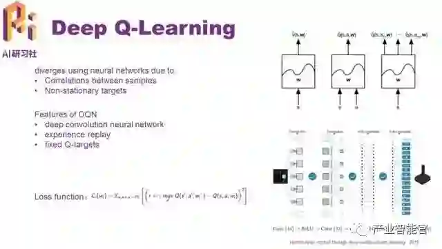 三、deep Q-learning 用 Q-target,Q-target 是之前的一个参数,它是固定的,它给出的值,可以看 loss function 这里,公式的具体讲解大家可以回放公开课视频至第 24 分钟进行查看。