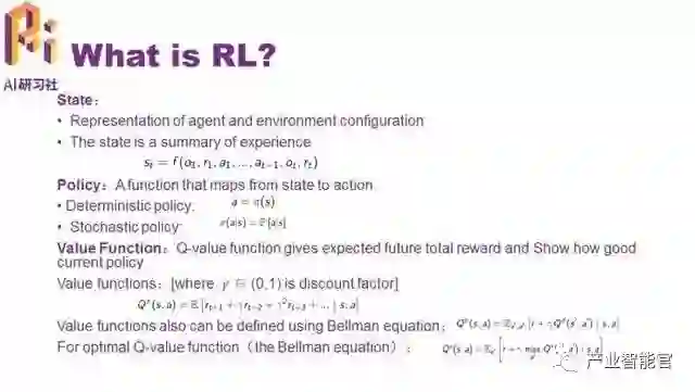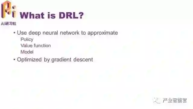 下面来介绍什么是深度强化学习,以我的理解,深度强化学习指的是拟合它的策略、价值函数、模型。深度学习一般来说就是深度神经网络(其他深度树之类的不在考虑范围内),它还有个特点:利用梯度下降或者其他拟合改进之后的一个算法来拟合。现在,深度强化学习也越来越强大,不断得到发展。