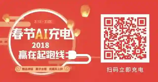 春节将至,黄金充电期即将来临!AI慕课学院为广大AI学习爱好者推出了“春节AI充电”活动,精品AI入门课、热门应用系列课、多重选择!寒假AI学习狂欢,优惠折上折,福利抢不停!春节AI充电 2018赢在起跑线! 详情点戳阅读原文链接或长按识别上方二维码~