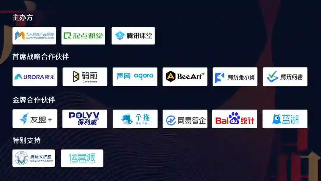 感谢首席战略合作伙伴极光、码前、声网、BeeArt、腾讯兔小巢、腾讯问卷的大力支持。