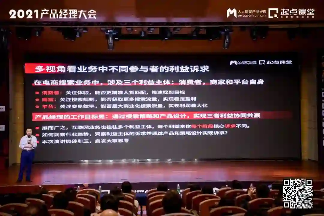 他提出一个观点:To C 和To B 兼顾的产品需要向 To B 进化。接着,他从不同视角洞察产品中参与方的利益诉求。并且,从三个问题出发,分析如何更好地满足参与方的利益诉求的协同之道。