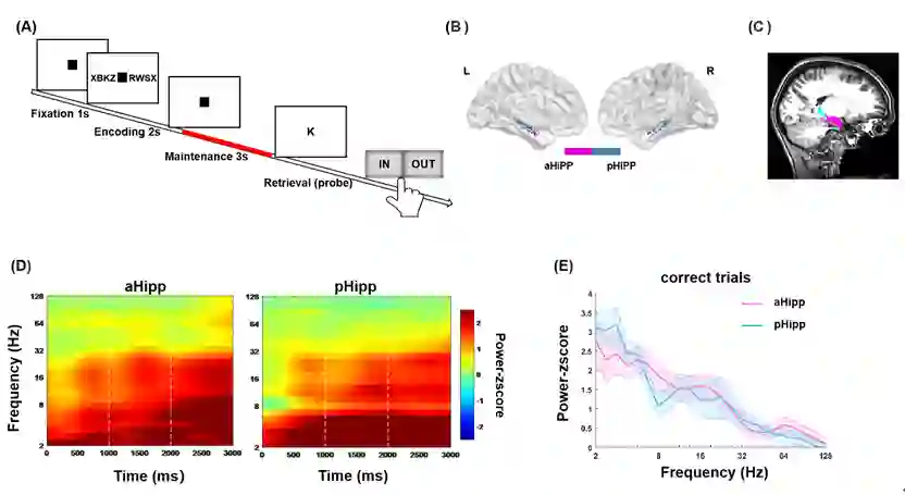 研究者招募了14名在海马体植入深部电极的难治性癫痫患者完成经典的工作记忆认知任务。这些患者是因抗癫痫药物治疗无效,需要接受手术治疗。术前临床医生会在患者脑内植入多根深部电极采集场电位信号以精确评估致痫灶的位置。电极植入靶点完全根据治疗目的确定,与此次研究无关。