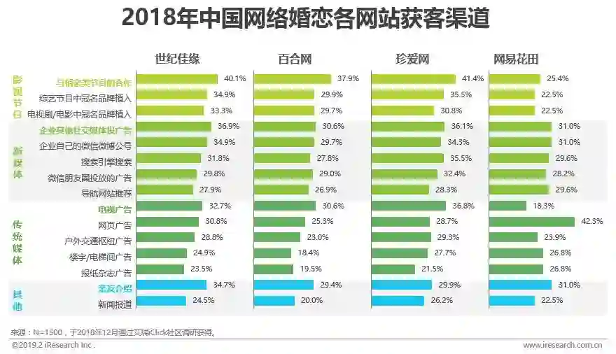 核心获客渠道为相亲类节目、社交媒体、电视广告和亲友介绍