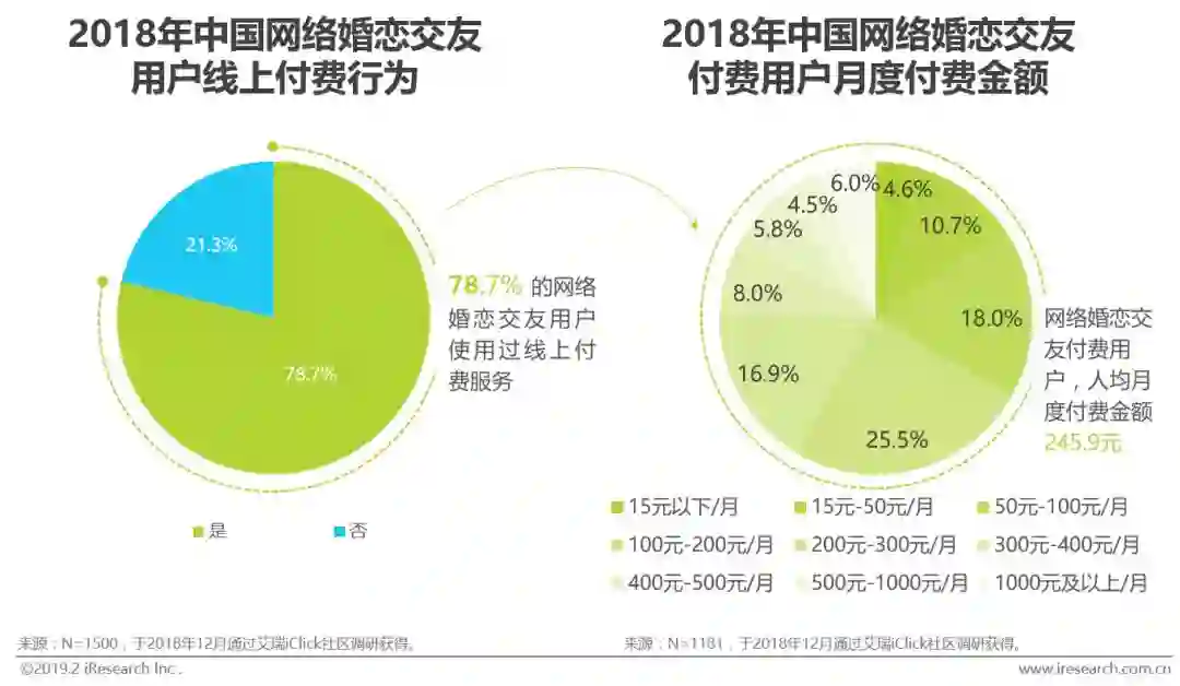 网络婚恋交友付费用户占比超7成,且人均消费金额为245.9元