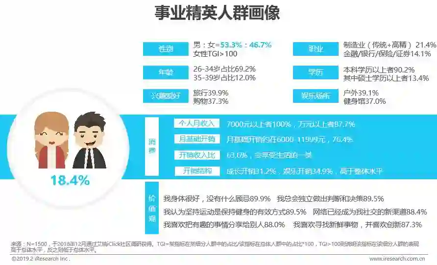 本科学历,中等以上收入,26-34岁为主体人群,大部分重视家庭与事业,对品质生活有追求