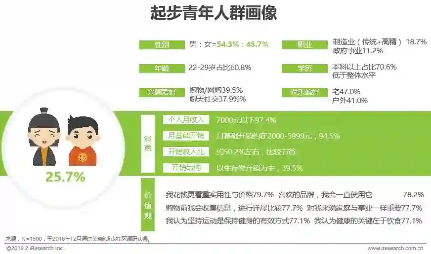 起步青年:最年轻的人群,收入较低且生活相对节省,现阶段缺乏对品质的追求