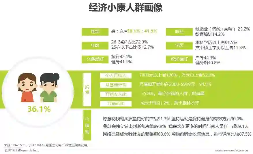 经济小康:占比最多36.1%,且具有较高财商,内心向往家庭,比起潮流时尚更注重生活品质感