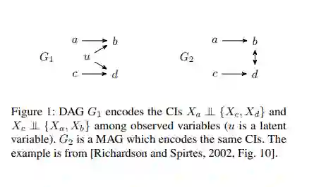 祖先图是编码因果知识的一个重要工具,因为它们代表了关于潜在混淆和选择偏差存在的不确定性,可以从数据中推断。对于其他的图模型,几个最大祖先图(MAGs)可以以条件独立性的形式编码相同的统计信息。这样的MAGs被称为马尔可夫等效。这项工作涉及MAGs之间马尔可夫等价的图表征和计算方面。这些问题在过去的几年里已经被研究,导致了几个标准和方法来检验马尔可夫等价。Hu和Evans [UAI 2020]提供的最先进的算法,对具有n个顶点的实例运行时间为O(n^5)。我们提出了一个新的构造MAGs的马尔可夫等价的图形判据,它允许我们发展一个实际有效的最坏情况运行时间为O(n^3)的等价检验。此外,我们的准则是用自然图概念表示的,这是独立的价值。。