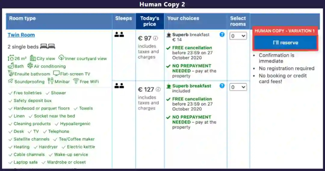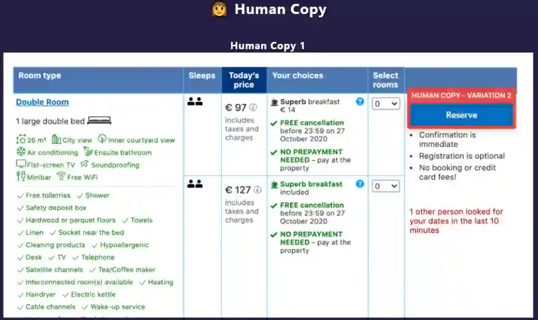图 6. Booking 网站人类生成的文案