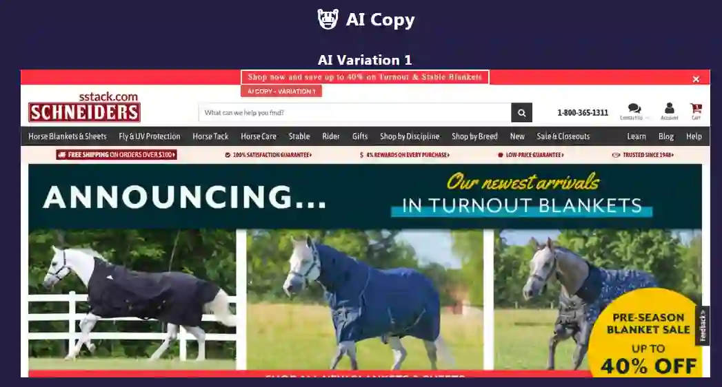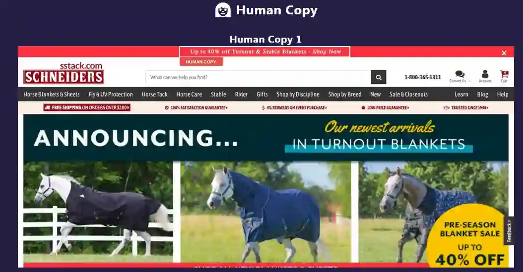 AI 获胜的文案有三项,我们选择了 Schneiders 的一项实验进行展示(红色框,生成标题的文案)。人类生成的文案如图 8,AI 生成的文案如图 9。我们直观的感受是,AI 生成的标题将 Shop Now 放在最前面,给人的目标性感受更强,更有效。