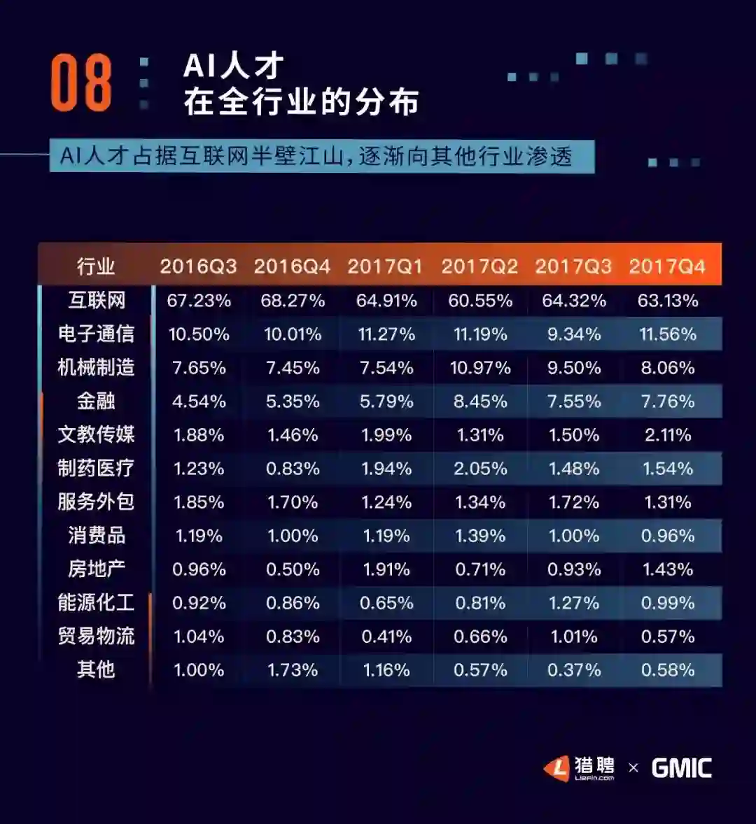 过半AI人才从事互联网行业,但正逐渐向其他行业渗透