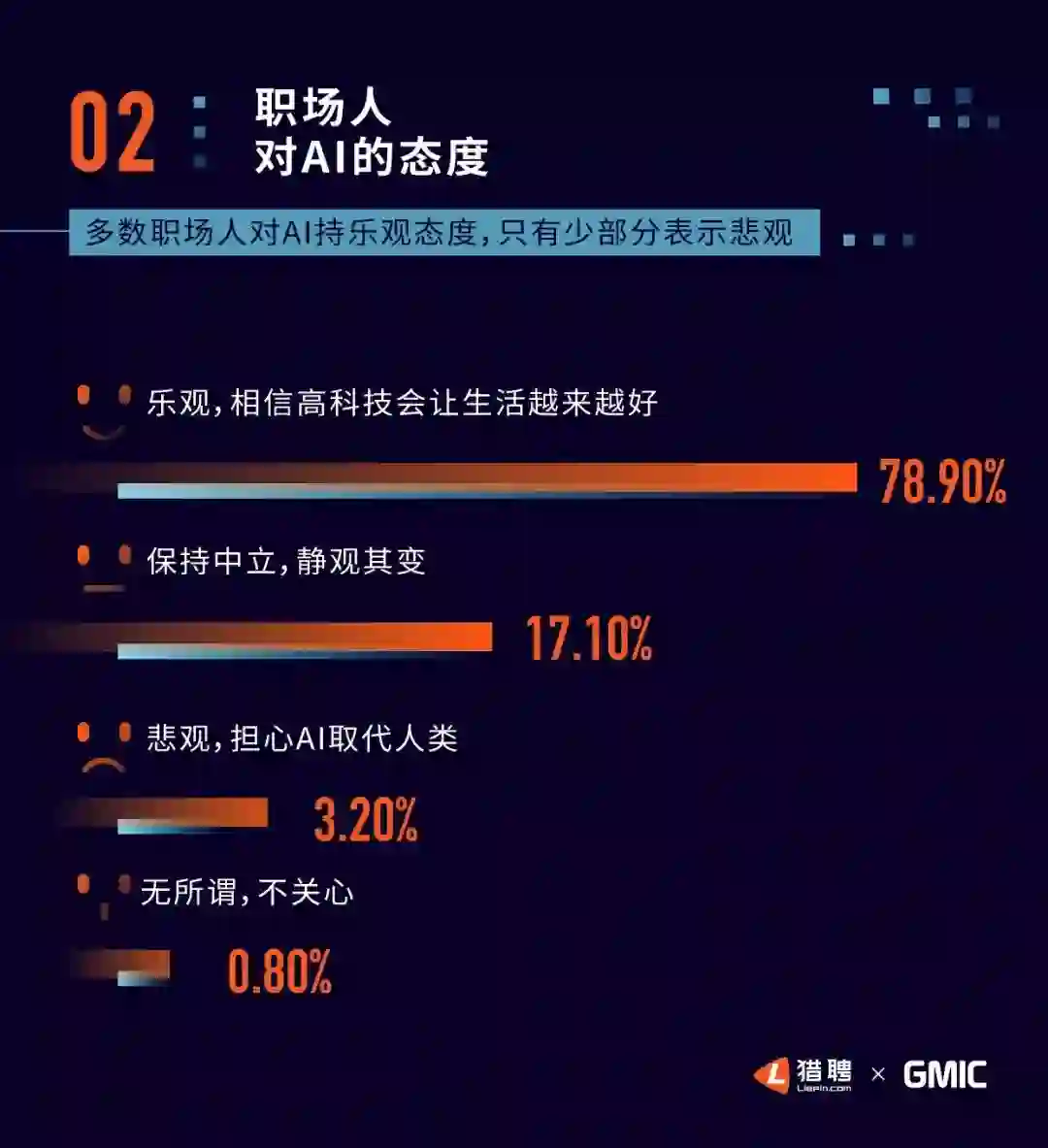 大多数职场人对AI前景表示乐观,少部分有悲观情绪