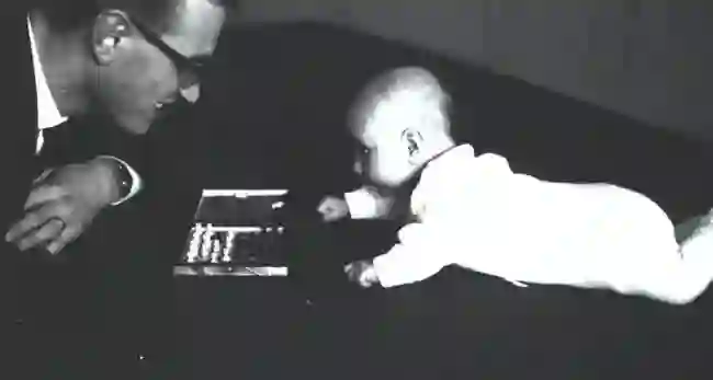 婴儿时期的Jürgen Schmidhuber,左边是他父亲