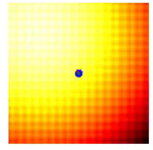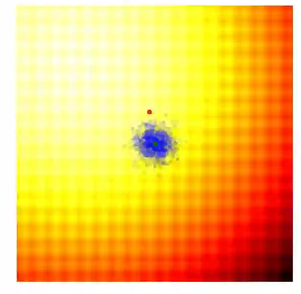 上图向大家展示了这个简单的遗传算法是如何工作的。绿色的点代表棕群众上一代被保留下来的「精英」(即用于当代交叉重组的双亲),蓝色的点代表用于产生候选解的后代,红色的点代表最优解。