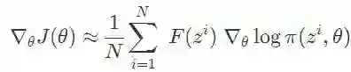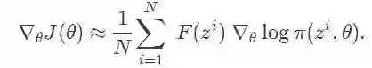 在一个规模为 N 的种群中,我们将解表示为 z1、z2...zn,我们可以通过下面的和式估计梯度:
