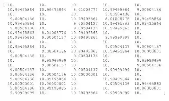 使用 CMA-ES 算法在 100 维的 Ras 函数优化问题中最终得到的解,全局最优解应该是一个 100 维的元素的值为 10 的向量
