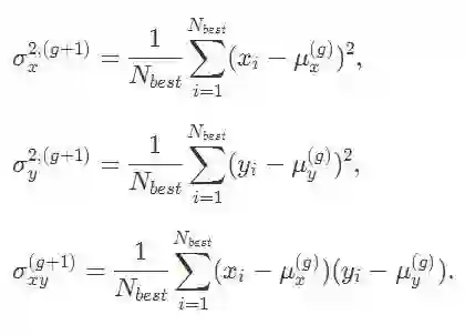 在我们得到了下一代(g+1)的 μx、μy、σx、σy、σxy 等参数后,我们现在可以抽样得到下一代的候选解。