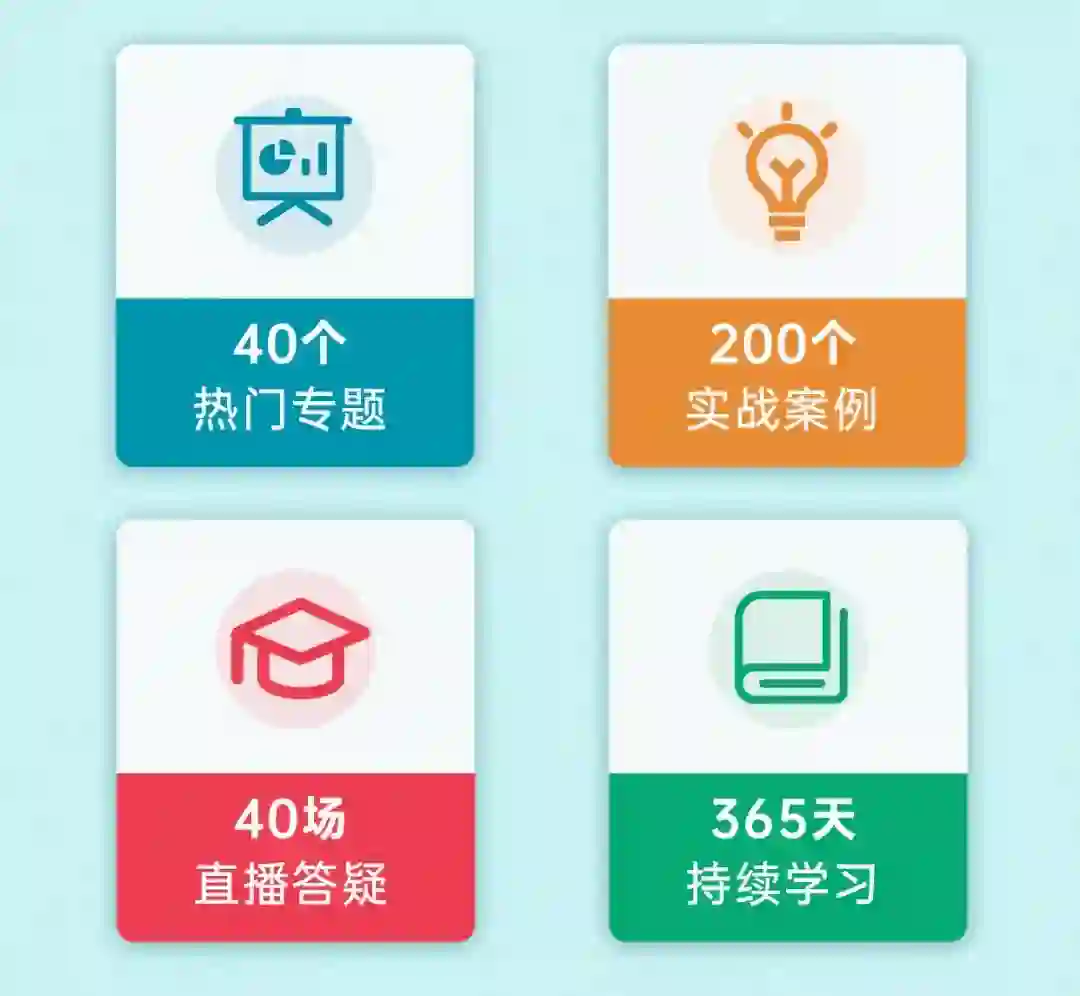 作为一个全年持续更新的线上学习产品,QCon+ 设置了 40 个热门话题,覆盖前后端开发、架构、AI 等 12 个技术领域,联合众大厂技术专家输出 200 个前沿技术实战案例。