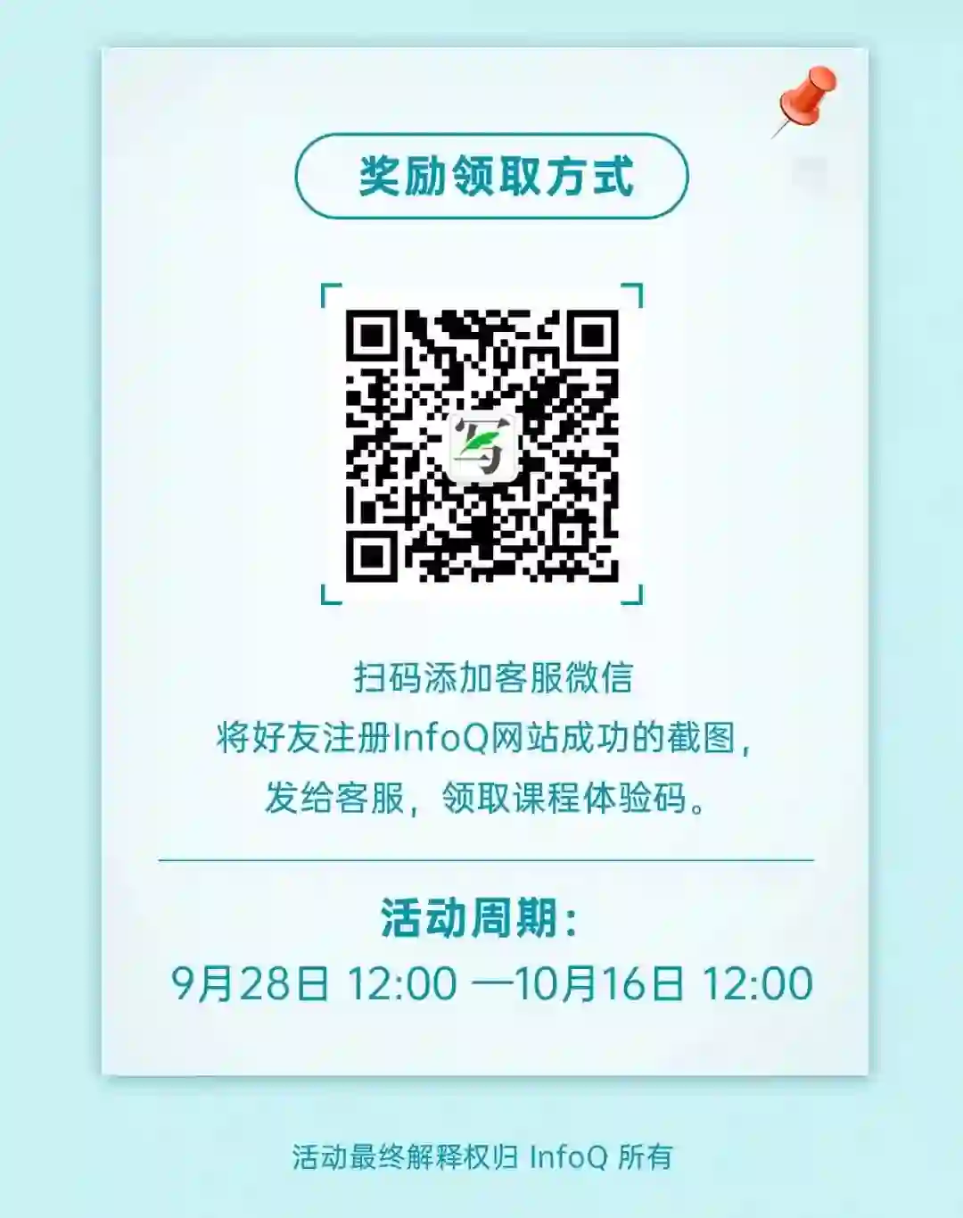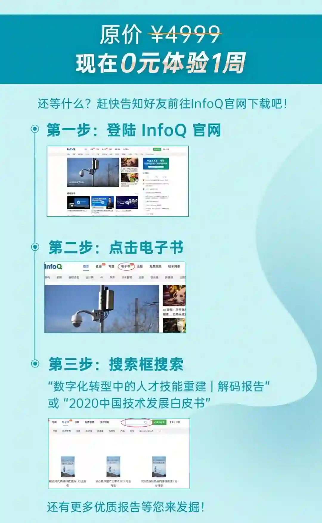 赠人玫瑰,手有余香,好物不独享!希望您在下载阅读之后,也能将此报告传阅给您的好友。为了给您的学习加油助力,我们拿出价值 4999 元的 QCon+ 免费体验一周的福利,奖励无私分享者!