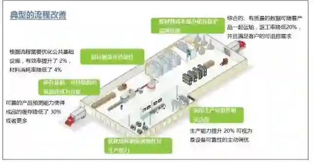 1、生产力提升 20%,材料消耗率降低 4%。利用数据预测分析和机器学习的智能制造系统有潜力提升生产单元以及整个制造厂级别中机器的收益率。下面的图片来自通用电气(General Electric),并被国家标准协会(NIST)所引用,总结了预测分析和机器学习的运用给制造业带来的好处。
