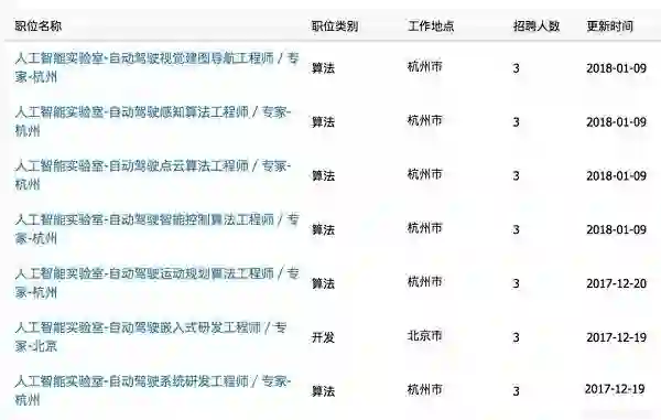 阿里的自动驾驶业务目前还处在招兵买马阶段。12月中旬开始,阿里官方网站上开始出现自动驾驶相关的人工智能实验室(A.I. Labs)岗位,另外据36氪报道,这个团队中有不少无人车创业公司nuTonomy的旧部,已经开始面向车厂做介绍。