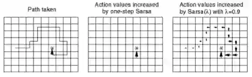 的密切关系更新这些状态行为对的价值Q上图右所示),个体在这个Episode中经历的所有状态行为对的Q值都将得到一个非0的更新,但是那些在个体到达