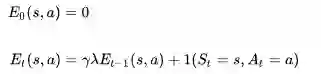 与上一讲对于TD(λ)的反向认识一样,引入效用追踪(Eligibility Trace)概念,不同的是这次的E值针对的不是一个状态,而是一个状态行为对: