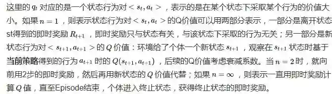 在之前,我们学习了n-步收获,还记得定义吗?,这里类似的引出一个n-步Sarsa的概念。观察下面一些列的式子: