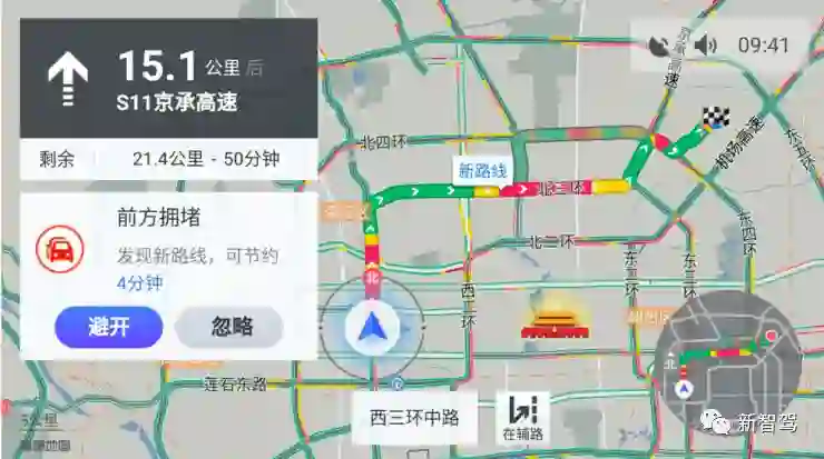 此外,导航中高德地图车机版3.0会实时探测前方更快路线,在原来动态规避拥堵的基础上增加限行、禁行、限行等事件的规避提醒,保证驾驶过程中总是最优路线。
