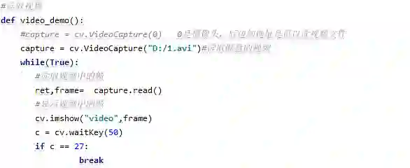 读取视频分为从摄像头中读入和从硬盘中读入,如果是摄像头就在videocapture函数中填写数值,0是默认的第一个摄像头,1.是第二个,以此类推,如果没有外置摄像头,就直接“”填写路径就行。