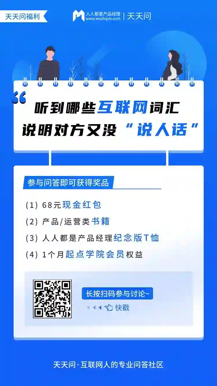 「天天问」是人人都是产品经理旗下的互助问答社区,每月将由官方运营团队精选一个话题与大家交流,并送出福利。