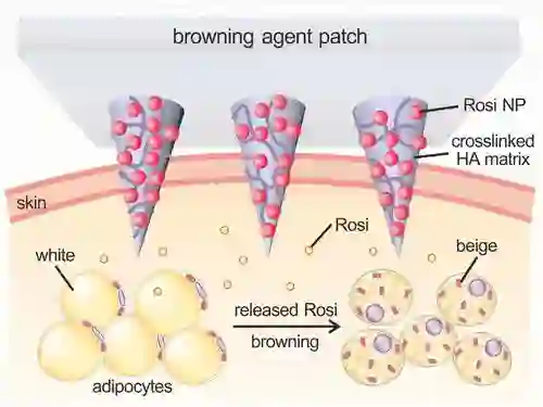 研究人员称,这一智能贴片可被用于除去一些多余的脂肪,如“游泳圈”;也可以被用于代谢疾病的治疗,如肥胖症、糖尿病等。