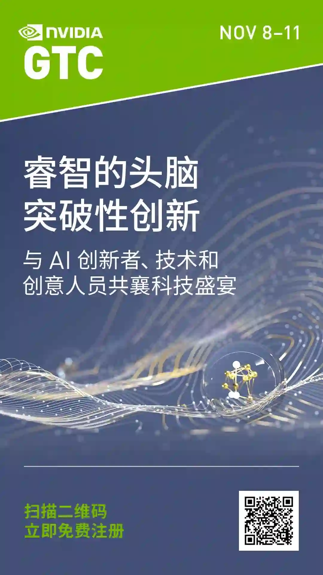 NVIDIA GTC 免费注册现已开放!欢迎扫描以下海报二维码,加入GTC,共襄科技盛宴!