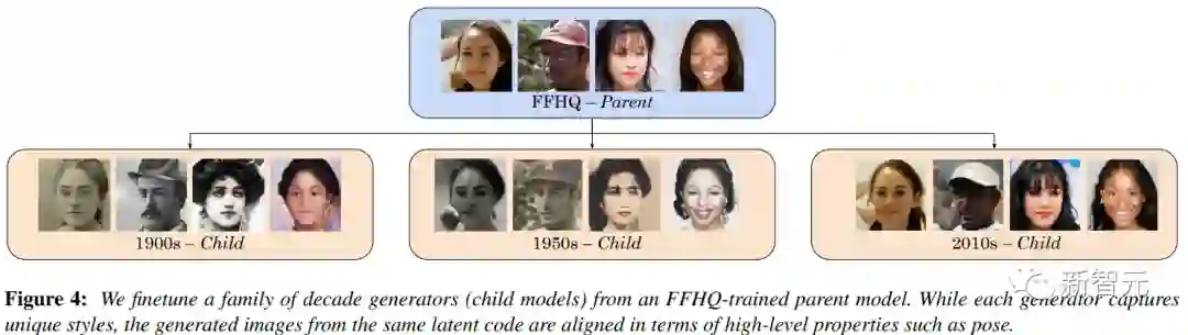 研究团队借助了StyleGAN(生成对抗网络)父子层次结构。特殊之处在于,他们没有选择训练一个涵盖所有年代的单一模型,而是为每十年的图像集添加一个子模型,通过训练模型集更好地综合每个时期的数据分布。