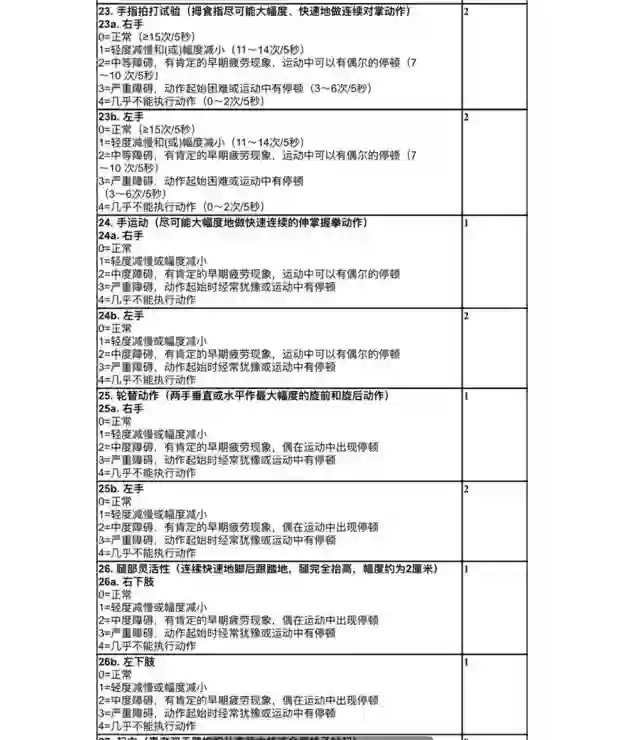 其中一种诊断方式就是 UPDRS(帕金森症综合评分表),图片来自腾讯: