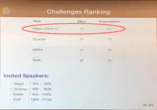 旷视科技Face++团队只参与了其中物体分割的挑战,并击败了主要竞争对手 Google,赢得了该任务的冠军。