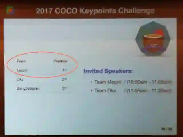 在共七项挑战项目中,旷视科技研究院团队(Megvii)参与了其中最重要的四项,并获得了三项第一、一项第二的优异成绩,一举击败了来自微软、Facebook、Google、商汤科技等企业,以及卡内基梅隆大学、北京大学、香港中文大学、上海交通大学等高校的竞争者,成为了第一个在 COCO 竞赛中获得冠军的中国企业。